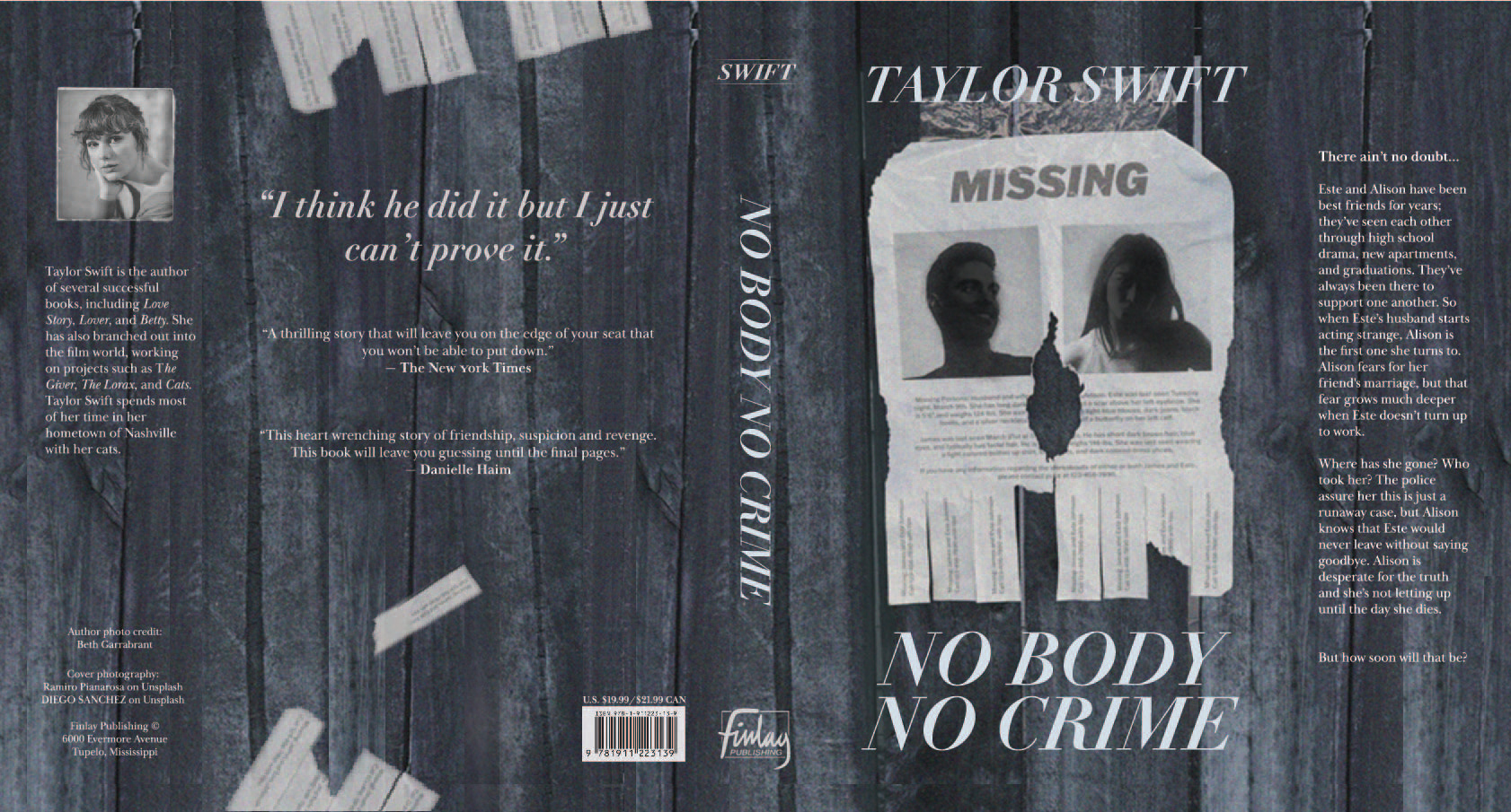 For this class project we were tasked with reimaging a song as a novel and designing the cover art. I sought to capture the moodiness and the mystery of the song.
